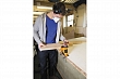 Шлифмашину можно использовать и как ручной инструмент, и как компактный станок. Возможность крепления к столу или верстаку вверх подошвой предусмотрена штатно: в корпусе есть отверстия для съемных винтовых струбцин, которые, наряду со специальной резиновой прокладкой, входят в комплект поставки. Еще один аксессуар из базового комплекта – съемный регулируемый упор заготовки. Он крепится к подошве двумя винтами и по принципу действия отдаленно напоминает фрезерный упор: на него можно опереть заготовку, он помогает задать и удержать глубину съема материала.