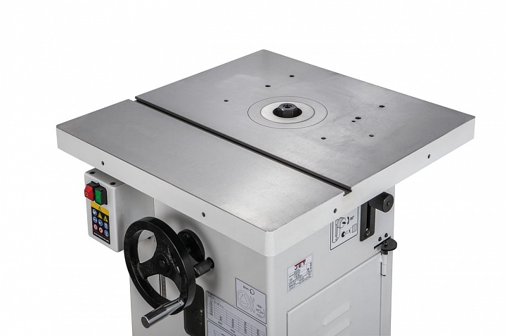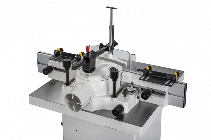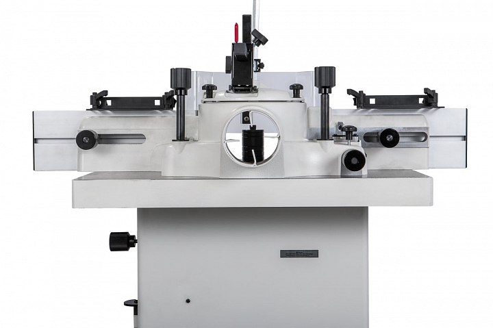 У станка сменный шпиндель, который фиксируются на валу гайкой и шомполом. Штатно установлен 30-миллиметровый для насадных фрез, для концевых в комплекте поставляются цанговые зажимы 8 мм, 12 мм и 1/2 дюйма. Для удобства смены оснастки предусмотрена блокировка вращения вала; в целях безопасности и защиты оборудования установлен концевик, не позволяющий запустить мотор, пока блокировка не снята. Четыре скорости вращения меняют переустановкой поликлинового ремня. В сравнении с предшествующей моделью передаточный ряд «смещен вверх» в сторону больших оборотов.