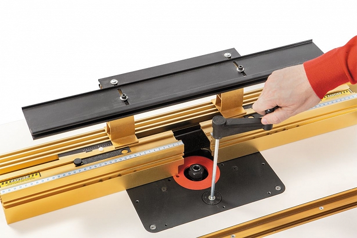 Один из вариантов использования JRM-1 – установка в стол при помощи модуля JRMLS-1 (опция), оборудованного лифтом для подъема и опускания. Сам стол может быть простым с вырезом под площадку или специальным с фрезерным упором, Т-образными пазами, собственным выключателем и иными специальными доработками.