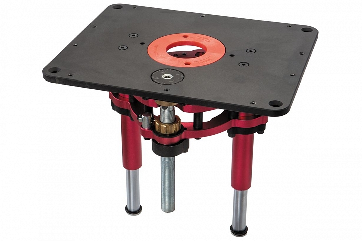 Крепежная пластина с механизмом подъема и опускания JRMLS-1 для установки в стол фрезерного мотора JRM-1 или другого подобного с цилиндрическим корпусом диаметром 98-107 мм.