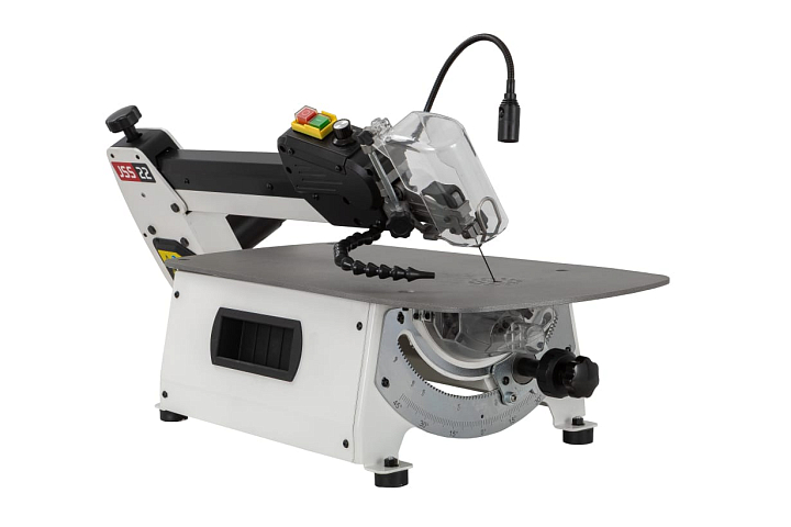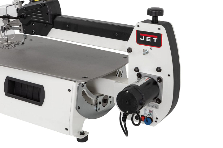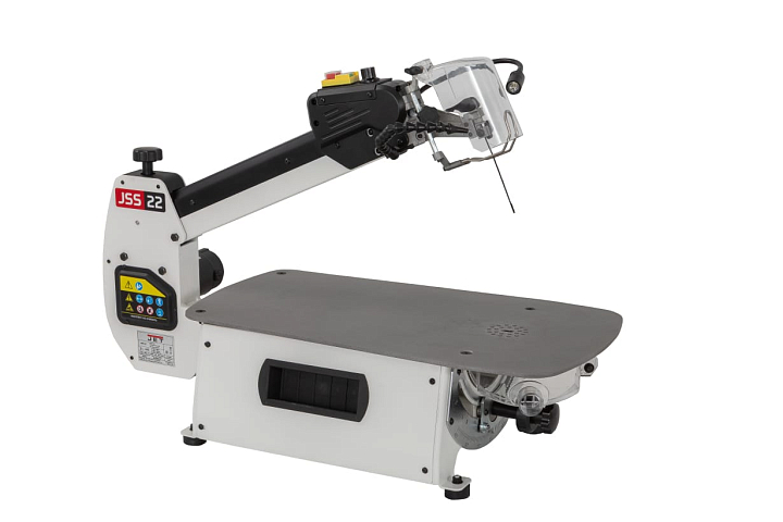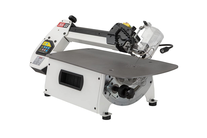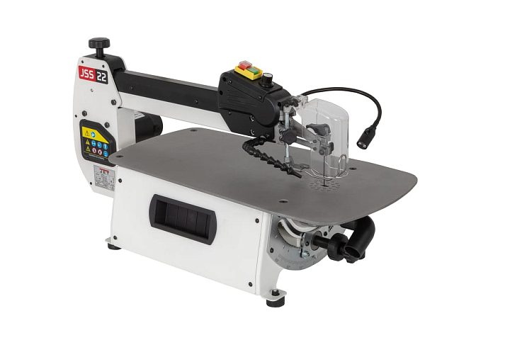 JSS-22 – новинка 2025. Абсолютно новый профессиональный лобзиковый станок в линейке JET. Станок разработан для достаточно интенсивного, профессионального использования. От недорогих, любительских моделей его отличает целый ряд особенностей. Прежде всего большой площади, точный лист рабочего стола с особенным покрытием для стабильной фиксации и удобного перемещения заготовки при пилении. Все детали рамы маятникового механизма и подстолья изготовлены и толстой стали.