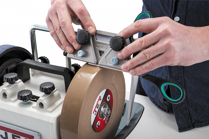 Фиксатор с двойным зажимом позволяет затачивать прямые лезвия с разной в сечении толщиной, такие как лезвия ножниц, секаторов и пр. Применяется для шлифования вдоль направляющей штанги SA-1