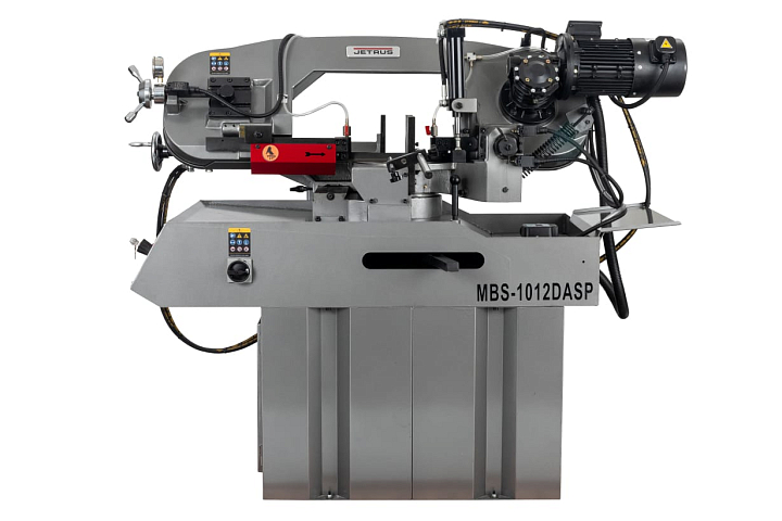 Модель MBS-1012DASP имеет регулируемую направляющую для регулировки прохода ленточного полотна в зависимости от формы заготовки и ее диаметра. Направляющие блоки осуществляют позиционирование полотна непосредственно под прямым углом к поверхности обрабатываемой заготовки. Максимальная стойкость ленточного полотна обеспечивается подачей СОЖ в зону резания.
