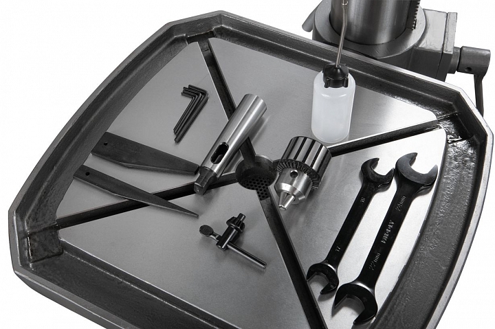 Станок предназначен для выполнения следующих операций: сверления, рассверливания, зенкования, зенкерования и развертывания. При условии дополнительной установки крестовых тисков с продольным и поперечным ходом, наличие шомпола на сверлильном станке позволяет проводить мелкие фрезерные операции.