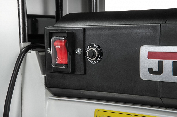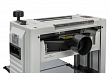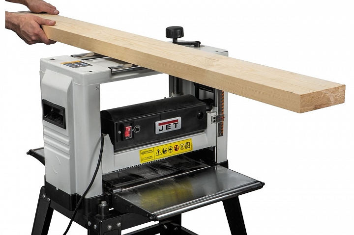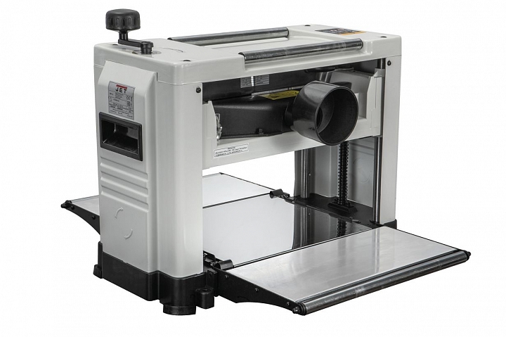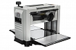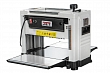 JWP-12 переносной рейсмусовый станок с откидными столами. Несмотря на компактные размеры, оборудован мощным (1800 Вт) тяговитым коллекторным двигателем и позволяет «пропускать» заготовки шириной до 12 дюймов (примерно 300 мм) с высокой производительностью. При тщательной настройке обеспечивает высокое качество рейсмусования, после которого не требуется дополнительная финишная обработка деталей. Подходит для грубого чернового строгания, причем лучше многих других однотипных моделей, поскольку в отличие от них имеет прочные перетачиваемые ножи, зафиксированные в барабане распорными планками, а не узкие одноразовые. Дополнительным преимуществом является запасная пара качественных лезвий из быстрорежущей стали, поставляемая в штатном комплекте. Станок имеет пылесборный кожух с патрубком для подключения к системе аспирации и оборудован типовыми для переносных рейсмусов системами регулировки высоты строгания вращающейся рукояткой и автоматической протяжки заготовки при помощи обрезиненных валов.