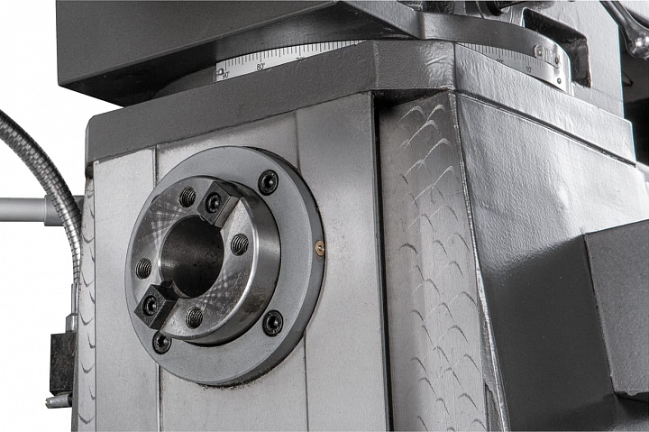 Для удобства работы фрезерная головка имеет механизм наклона влево или вправо в вертикальной плоскости на 90° и поворота консоли на 360° в горизонтальной плоскости.