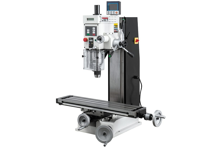 Сверлильно-фрезерный станок JMD-3T DRO представляет собой аналог модели станка JMD-3. Единственное отличие этой модели - увеличенная длина рабочего стола. Станок рассчитан на индивидуальное использование, может быть использован для мелкосерийных работ на производстве. Технически станок может быть подключен к электросети напряжением 230 В, используется для выполнения широкого спектра сверлильных и фрезерных работ. Благодаря наличию в двигателе функции реверса станок выполняет технологические операции по нарезанию резьбы. Высокое качество обработки обеспечивается цифровой индикацией вылета шпинделя и плавной регулировкой частоты вращения шпинделя.