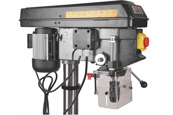 Jet JDP-17FT — профессиональный сверлильный станок для напольного размещения. Большой диапазон регулировки вертикального просвета за счёт подъёма/ опускания стола позволяет использовать его для работы с крупногабаритными заготовками, такими как готовые сборки изделий из металла или дерева.