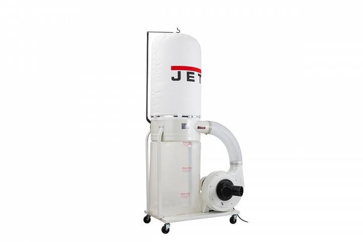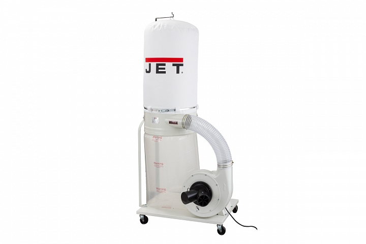 JET DC-1100A — вытяжная установка профессионального класса с мощным двигателем и высокой вместимостью пылесборника. Технология Vortex Cone, использованная при разработке этой модификации, обеспечивает улучшенную сепарацию (разделение фракций по плотности воздушным потоком) и более плотную, чем обычно, «упаковку» мусора в накопитель. Стальная диафрагма, физически разделяющая секции внутри аппарата, не позволяет потоку вновь подхватывать уже осевшие слои, что и увеличивает общую эффективность работы. По отзывам эксплуатантов установки Vortex Cone соответствуют более мощным и крупным моделям классической конструкции.