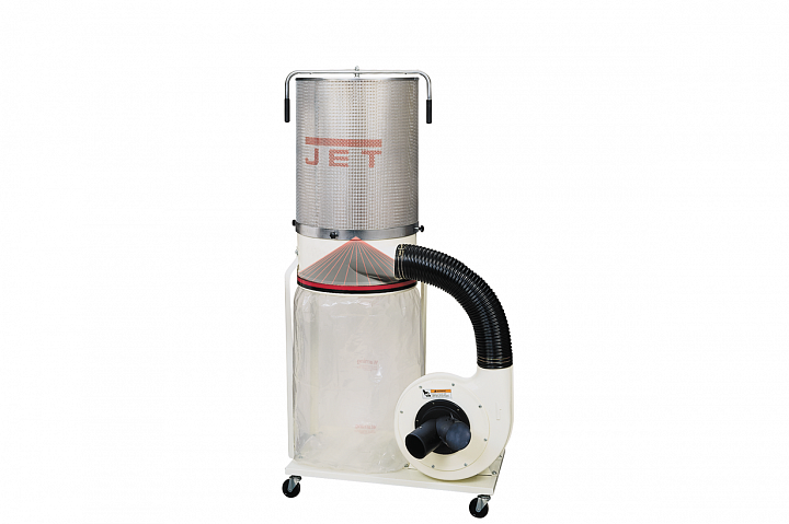 Мощная производительная вытяжная установка Jet DC-1100CK для профессиональной эксплуатации с деревообрабатывающим оборудованием всех типов. Модель комплектуется высокоэффективным фильтрующим картриджем, способным удерживать частицы диаметром от 2 мкм, что является на сегодня самым передовым стандартом. Другая важная особенность – высокая фактическая емкость пылесборника, которая достигается благодаря применению новой технологии Vortex Cone. Ее суть в организации воздушного потока внутри сепаратора таким образом, чтобы выпавшие в осадок частицы не подхватывались вновь, что способствует более плотной укладке мусора и уменьшению отложений в выходном фильтре (его очистка производится стряхиванием при повороте специальной ручки). Эти особенности позволяют использовать DC-1100CK на одном уровне с более мощными моделями классической конструкции, не имеющих конуса для разделения объемов накопления и сепарации.
