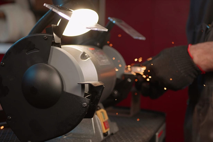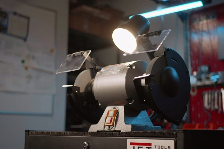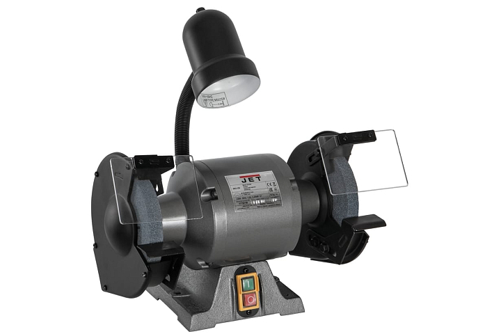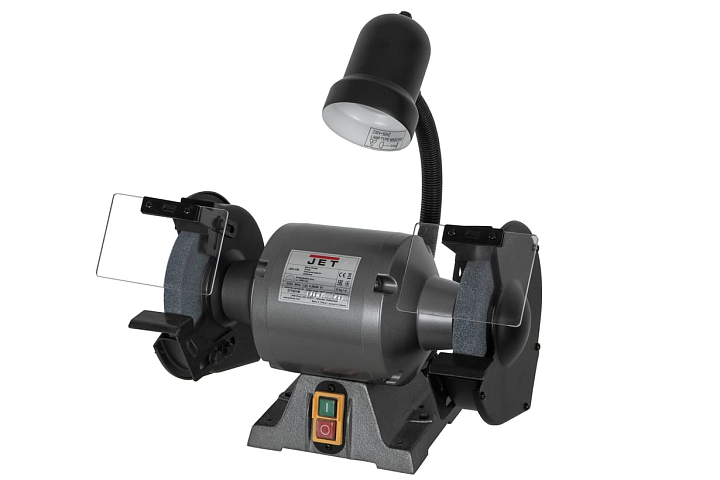 Jet JBG-150 — компактный заточной станок индустриального класса, произведенный на Тайване, работа для которого найдется в каждой мастерской, будь то заточка инструмента или обработка небольших заготовок, сделанных из практически любых материалов. Основные факторы, определяющие удобство работы с наждаком, — это запас мощности и отсутствие биений, поэтому требования к качеству исполнения конструкции весьма высоки, несмотря на её кажущуюся простоту. Заточной станок JBG-150 им полностью удовлетворяет: вал установлен в добротных пылеизолированных шариковых подшипниках, мотор обладает высокой по меркам класса мощностью и способен долго работать, не перегреваясь. Дополнительные факторы безопасности и удобства эксплуатации – лампа подсветки с гибким штативом, регулируемые прозрачные экраны и жёсткие стальные кожухи ограждения, на которых закреплены подручники.